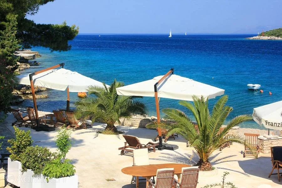 This is a great little restaurant in a very pretty and accessible village called Raciste on Korcula Island. With a little boules court just below, you can moor up in the harbour and wander up to the bar for pizzas, calamari and other holiday classics. It won’t win any awards for its menu but everything is fresh and delicious. With a lovely beach and great swimming off the break-water, its a really lovely spot to cruise in, eat and cruise out again if you are doing multiple stops in the day. I wouldn’t say its a ‘stay and hang out all day’ number like some of the others. £